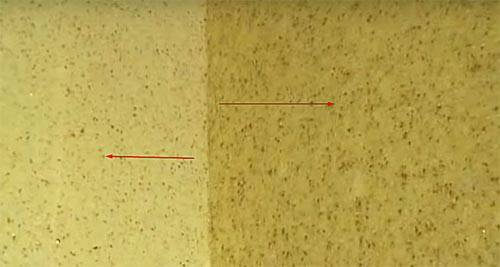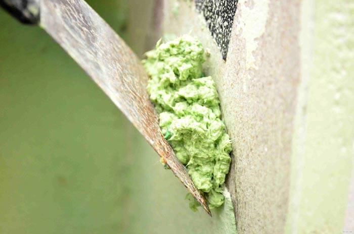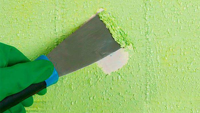 הרטיבו את הקירות באופן חופשי בעזרת ספוג לח והמתינו כ- 10-15 דקות. לאחר המרית או המגרד, הסר את הרכב מהשטח של הקירות. תהליך זה אינו מהיר. חתיכות של תערובת יבשה יישארו במקומות, יהיה עליהן להשרות מספר פעמים. ניתן להשתמש בגליל פרווה במקום בספוג.