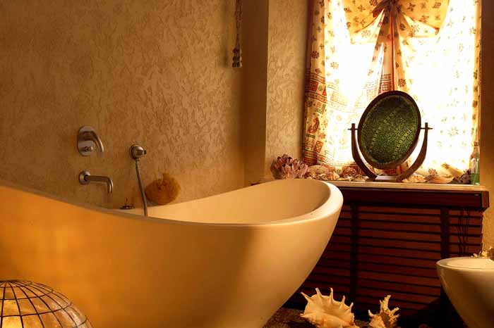 טפט נוזלי יכול להיקרא פיתרון נועז ויוצא דופן עבור קישוט לאמבטיה... חדר זה מאופיין באווירה לחה ושינויי טמפרטורה. מסיבה זו, יש לנקוט בזהירות מיוחדת בבחירת חיפויי קיר ורצפה. טפט רגיל לא יעבוד במקרה זה. הם לא יחזיקו מעמד אפילו כמה חודשים, בתנאי שהשתמשת בדבק באיכות גבוהה. אבל טפט נוזלי הוא עניין אחר. מתברר שהם מעולים לתנאי אמבטיה ספציפיים.