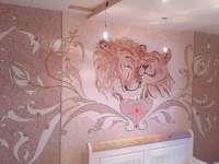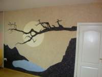סטנסילים יעזרו ליצור דפוסים יוצאי דופן על הקירות. בעזרתם, אפילו אדון טירון יכול ליצור תמונה אמיתית. קומפוזיציות ססגוניות נראות מקוריות במיוחד. כדי להחיל תערובת של צבעים שונים, תצטרך להכין מספר תבניות. באמצעות סטנסילים קומפוזיציות נפחיות נוצרות גם לטפט נוזלי. לשם כך, תערובת מוחלת על הציפוי הראשי באמצעות תבנית בכמה שכבות, והשגת יצירת דמות תלת מימדית.