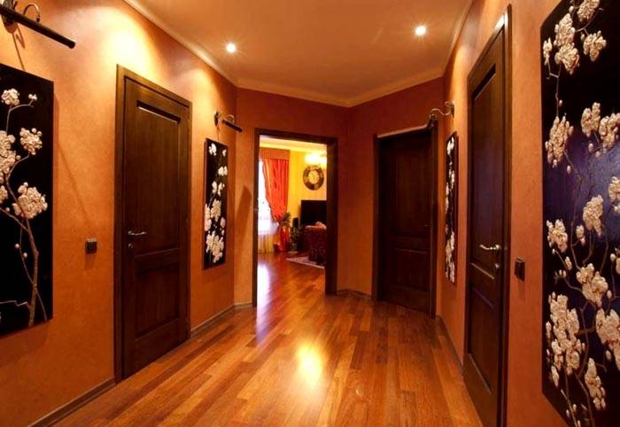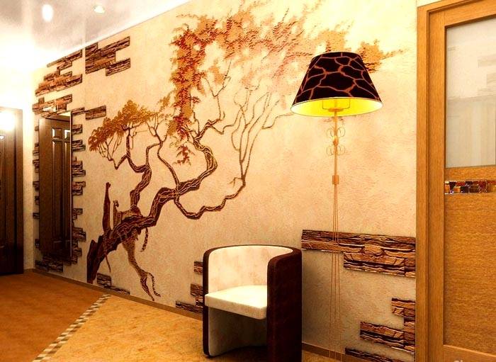 במסדרון, אתה יכול אפילו ליצור רישומים תלת מימדיים באמצעות טיח תאית. אבל הכל צריך להיות במתינות. ציור "מהודר" מדי על הקיר ייראה כבד בחלל קטן.