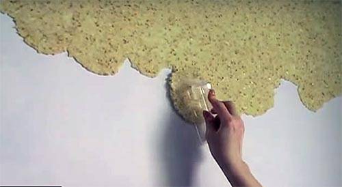 הטכנולוגיה של יישום טפט נוזלי כוללת שיטה ידנית או מכנית.איך מדביקים טפט נוזלי? יישום ידני מתבצע באמצעות כף טיח קונבנציונאלית. יש המשתמשים ברולר למטרה זו - הוא מורח את התערובת בשכבה דקה יותר. אם אתה משתמש ברולר מובלט, תקבל משטח מרקם.
