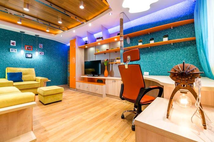 טפט נוזלי לתקרה הוא פיתרון מקורי בפנים. לרוב ציפוי זה משמש אם לתקרות יש פגמים. כיסוי כזה יעזור להתחמם בחדר הממוקם בקומה העליונה.