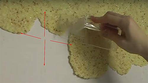 כיצד מורחים טפט נוזלי על התקרה? אחד מנקודות השיא הוא הכנה יסודית של המשטח. התקרה מכוסה שוב ושוב בפריימר, אבק מוסר. אם זה לא נעשה, חתיכות מהתערובת ייפלו על הראש במהלך התהליך.הקומפוזיציה מוחלת במנות קטנות, משפשפת בזהירות על פני השטח. יתר על כן, יש ליישם אותו ברישום, עם תנועה חדה מלמטה למעלה.