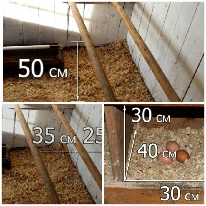 בתוך לול התרנגולות צריך להיות נוח ופרקטי. ישנן דרישות למספר העמודים הכולל. כל שכבה דורשת שטח פנוי של 25 ס"מ. להנחת, קן אחד מותקן עבור 5-6 תרנגולות, כמות זו מספיקה, מכיוון שציפורים אינן מטילות ביצים לאורך כל היום.